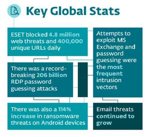 In the final three months of 2021, on average, ESET blocked 4.8 million web threats and 400,000 unique URLs daily, a rise of 2.6% from May-August 2021. The most frequent method was brute-force attacks, which use a systematic approach to break into accounts by calculating all possible combinations for passwords.