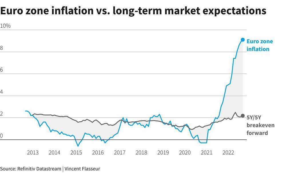 Euro zone inflation rose to another record high at 9.1% this month, beating expectations and solidifying the case for further big European Central Bank rate hikes.